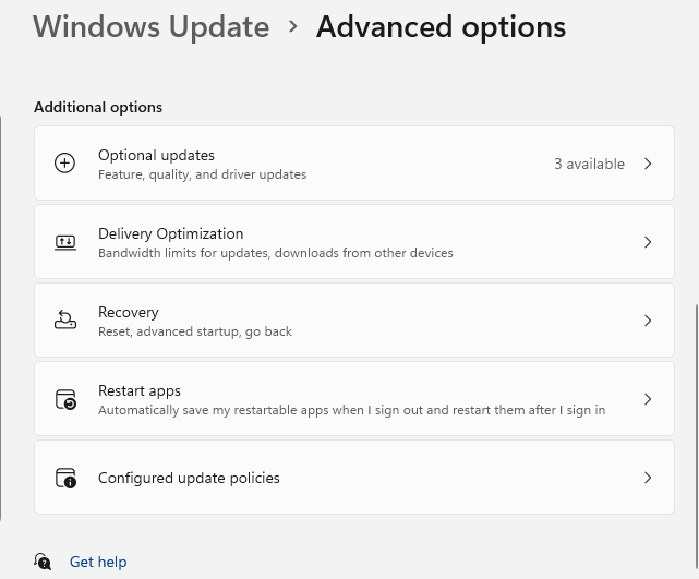 Earlier this year I had trouble connecting to the VPN on one of my devices (Windows 11 Pro 24H2). I also got this error from Teams: We Couldn’t authenticate you. This could be due to a device or network problem, or Teams could be experiencing a technical issue – Microsoft Q&A. It was an interesting learning experience, getting to see parts of the OS/networking stack in action that I don’t usually even think about. The troubleshooting process started with the usual tasks: install all Windows updates, including the optional updates. That option (from my desktop) is shown below: