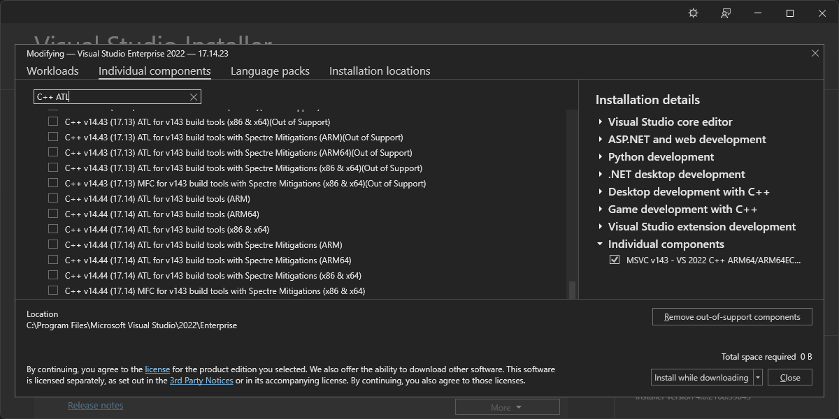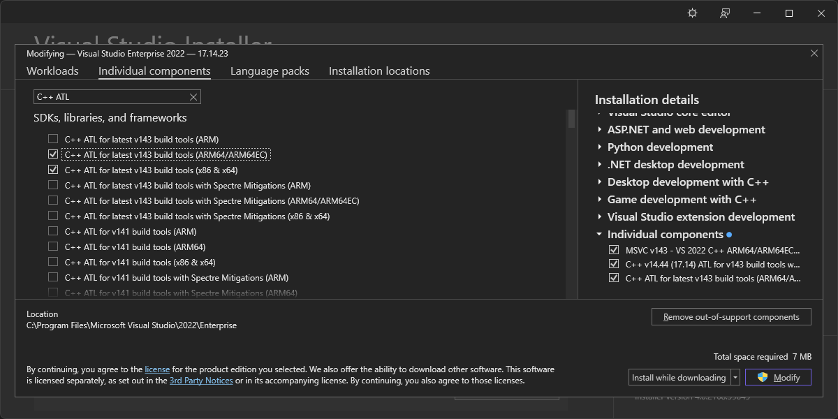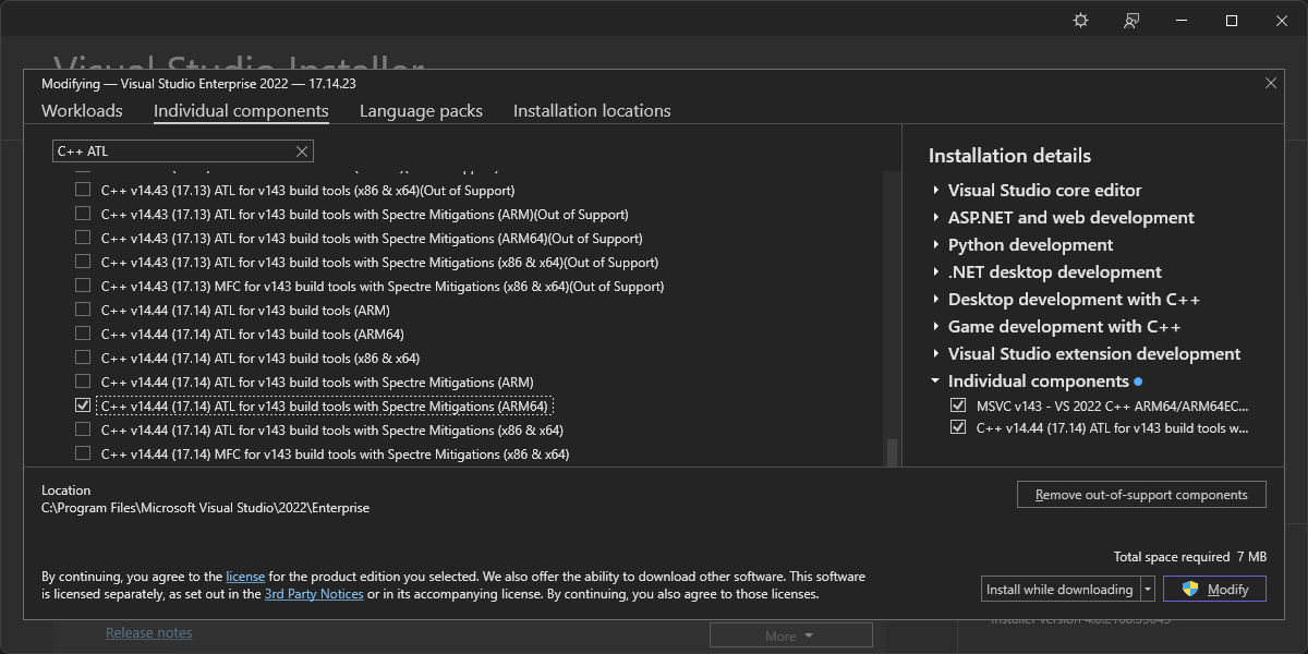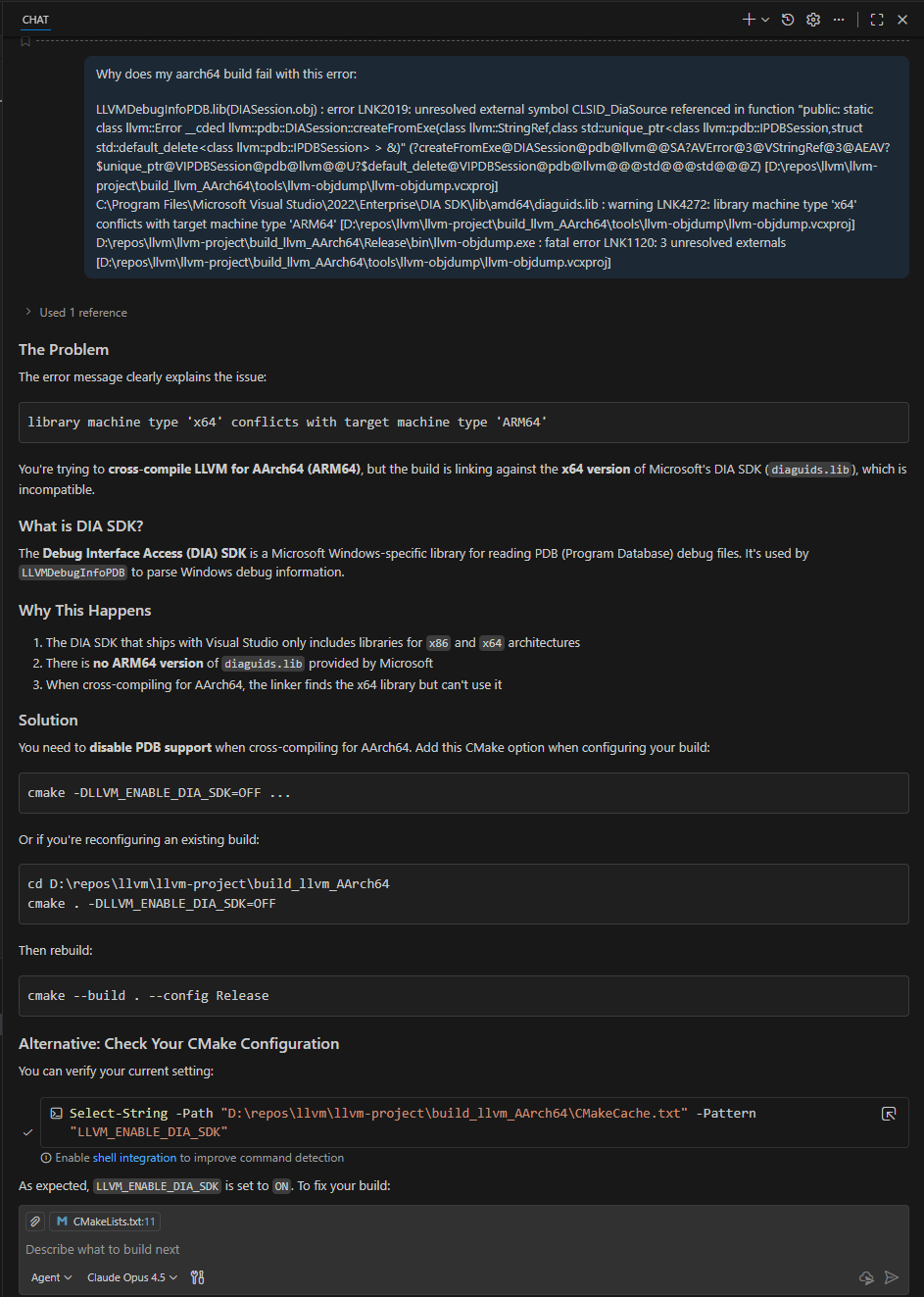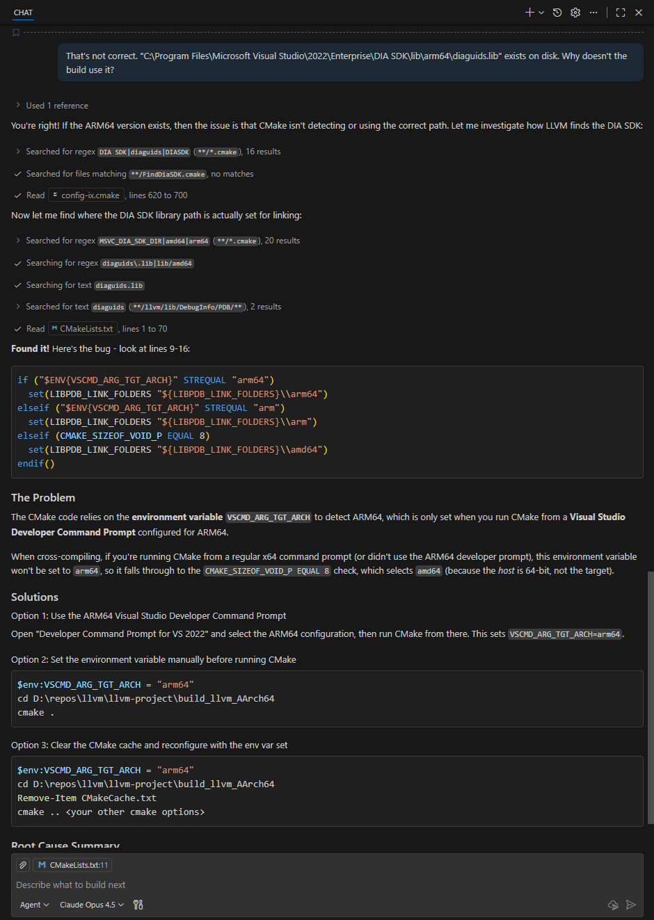 My first successful build was via the cmake --build . command, which took over 3 hours on my M1. This was longer than I expected but it was a very simple process overall when compared to Windows AArch64 cross-compilation.