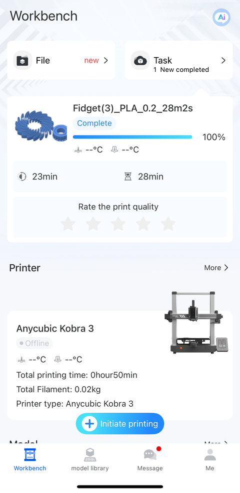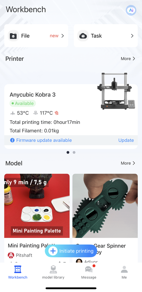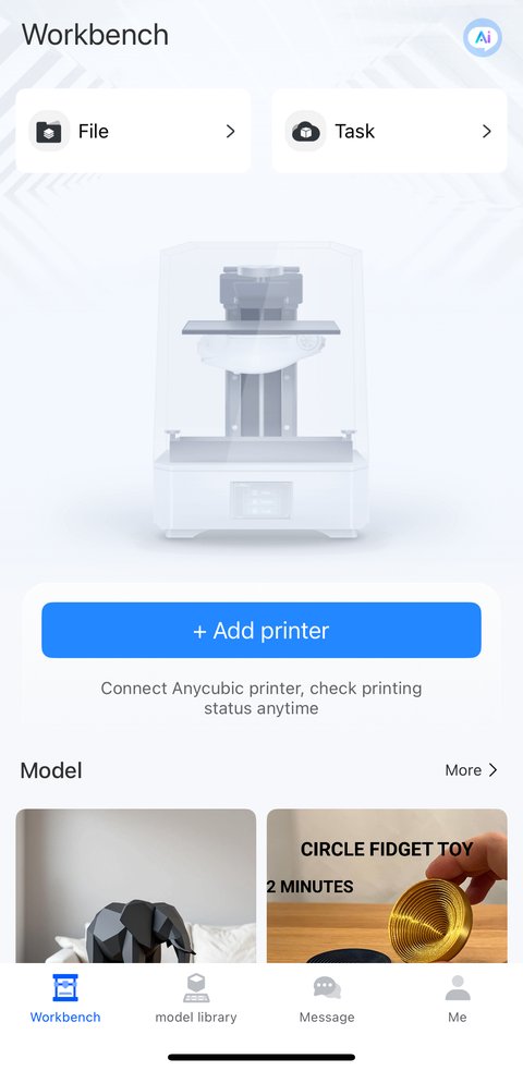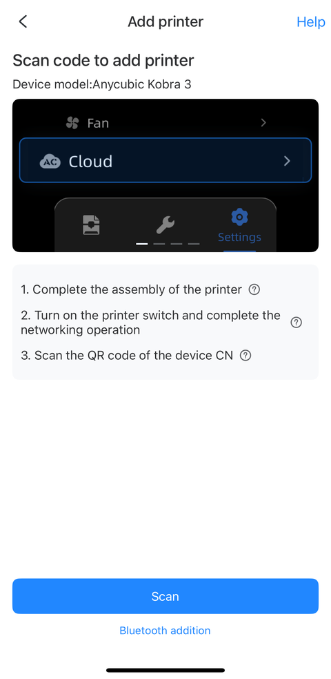 After powering up, the Kobra 3 displayed a QR code on its screen linking to the Anycubic app. The next step was to add the Kobra 3 printer after the app was installed and I registered a new account. I tried scanning the QR code on the printer screen, but it failed with an error about checking the server selection on the printer. I wasn’t sure what that was referring to since I had just connected the printer to my Wi-Fi without any “cloud” setup. I think I ended up selecting the printer by model in the app but still had problems connecting to it. I decided to install the desktop software to see if I could make progress that way. I think it was after I set up the Anycubic Slicer Next software on my desktop that I was able to connect to the printer in the app on my phone.
