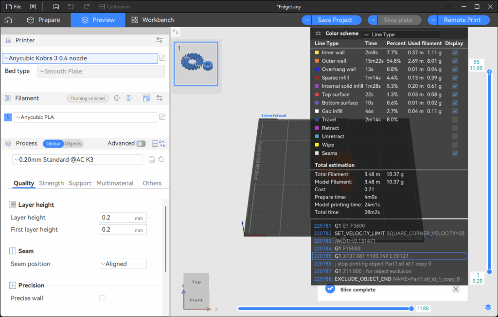 The printer’s accompanying USB stick has the Anycubic Slicer Next installer. I set it up when my initial attempts to connect to the printer on my phone failed.