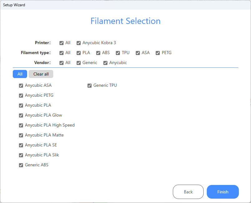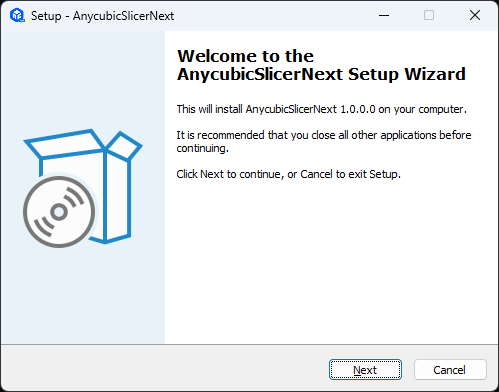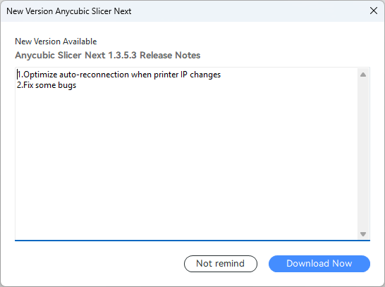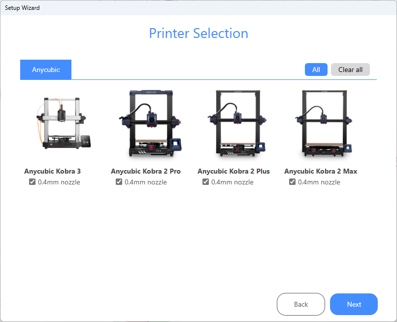The only change I made in the startup sequence was to disable the other 3D printers. I installed the updates when prompted then logged in after Anycubic Slicer Next loaded.