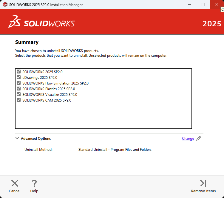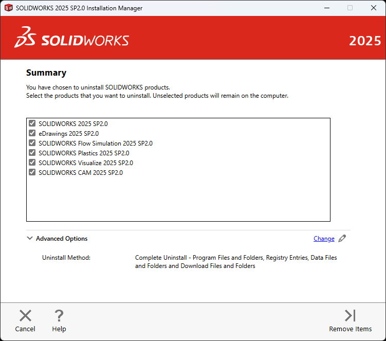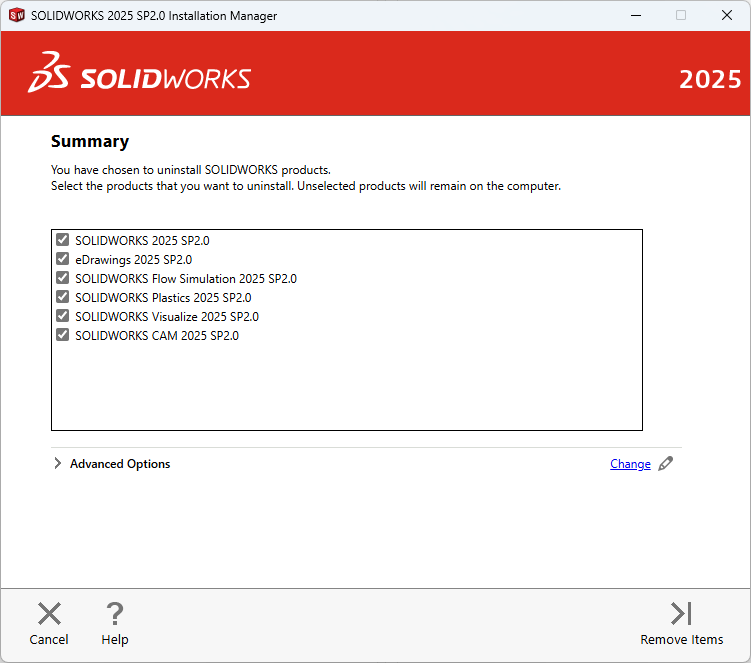 The first time I uninstalled SOLIDWORKS 2025, I didn’t adjust the “Advanced Options”: