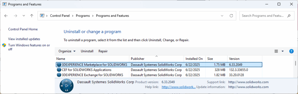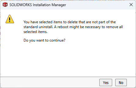 Uninstalling SOLIDWORKS 2025